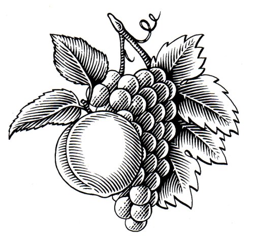 Woodcut Grapes 2